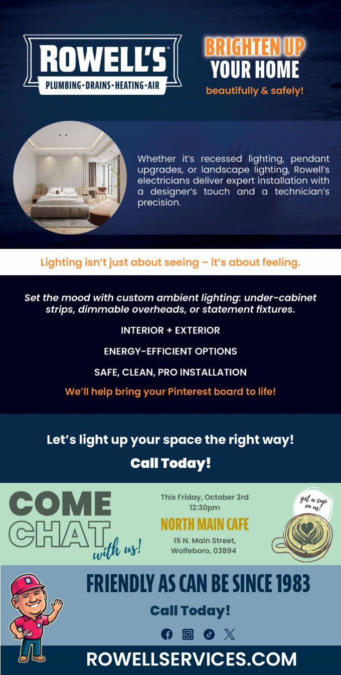 "Friendly As Can Be Since 1983!" When you need help with your plumbing, drains, heating, cooling or electrical in Nashua, you can always rely on Rowell's Services! Call us now or book online!