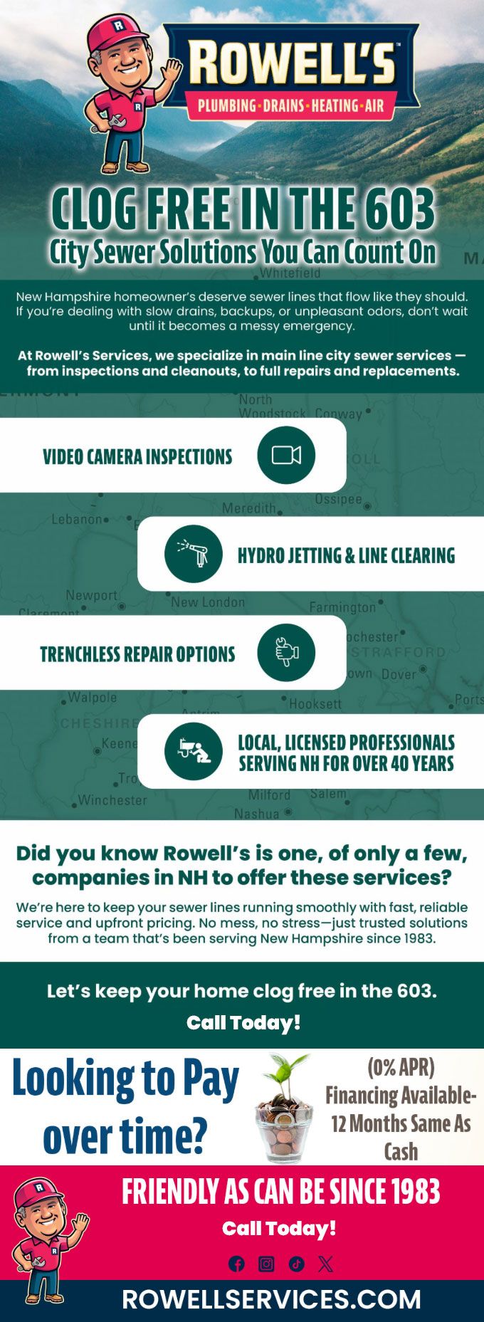 We're here to keep your sewer lines running smoothly with fast, reliable service and upfront pricing. No mess, no stress—just trusted solutions from a team that's been serving Nashua since 1983.