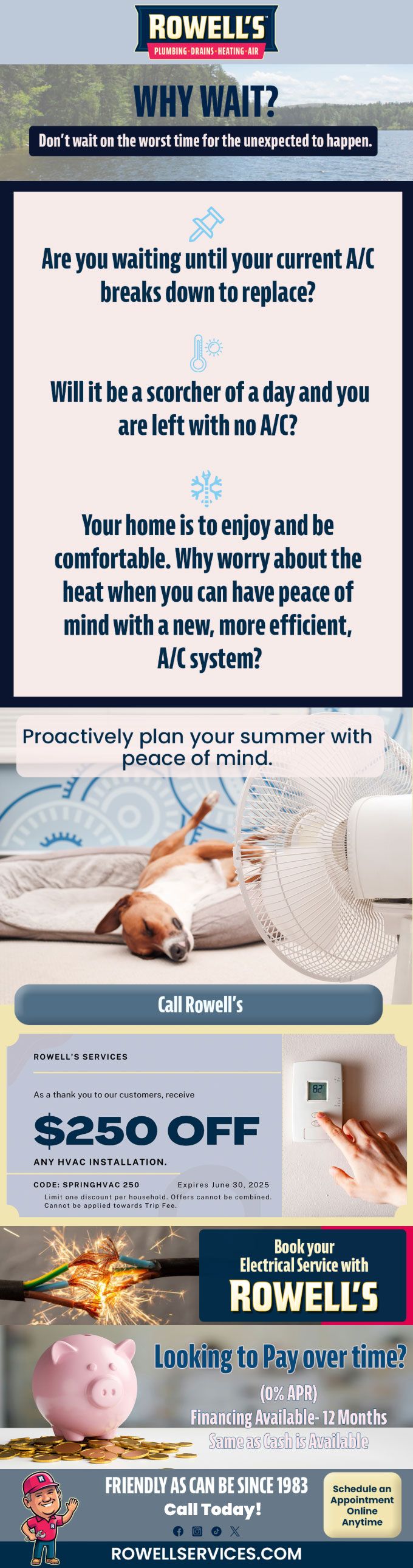 "Friendly As Can Be Since 1983!" When you need help with your plumbing, drains, heating, cooling or electrical in Nashua, you can always rely on Rowell's Services! Call us now or book online!